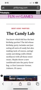 The Candy Lab named Best Place to Hold a Kids Party by Philadelphia Magazine!